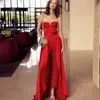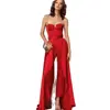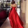 Cetim vermelho querida sem mangas macacão com faixas formal sem costas destacável trem vestidos de baile feitos sob encomenda de fiesta