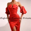 Simples laranja/vermelho curto 2021 arábia saudita strapless baile de formatura vestido mangas destacáveis fenda lateral formal vestidos de festa à noite