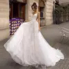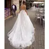 Uma linha sem costas vestido de noite sexy cintas de espaguete nupcial 3d rendas flores fairy beach applique vestidos românticos