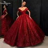 Quinceanera vermelho vestidos de baile rendas até glitter fora do ombro doce 16 vestidos de quinceañera