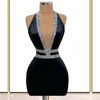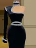 Gola alta Manga Única Vestido De Noite Da Sereia Preto Vestido De Baile de Veludo Vestido de Cocktail Robe de mariee платье женское vestidos