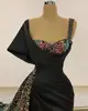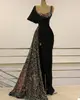 Luxo preto sereia vestidos de noite designer lantejoulas contas vestido de baile sem mangas alta fenda feito sob encomenda vestidos de festa formal luxu