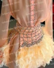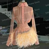 Nova chegada de duas peças lindo curto vestidos de baile de formatura mangas compridas penas cristais sparkly feminino coquetel vestidos feitos sob encomenda