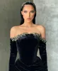 Sodigne cetim preto longo lado fenda festa noite vestido fora do ombro querida mangas compridas vestidos de noite formatura vestidos