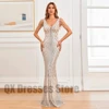 Requintado frisado sereia vestidos de noite elegante com decote em v sem costas até o chão sem mangas lantejoulas vestido de baile formal vestido de festa