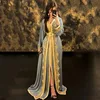 Marroquino kaftan caftan muçulmano vestidos de noite a linha com decote em v mangas compridas chiffon apliques dubai árabe turquia abaya vestido islâmico