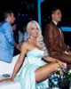 Sexy vestido de noite verde lado alto split longo vestidos de festa de formatura strapless vestidos de celebridade feito sob encomenda