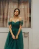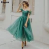 Eeqasn verde escuro macio tule midi vestidos de baile fora do shouder arábia saudita formal do baile de formatura vestidos de noite das mulheres vestidos de festa