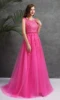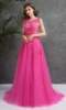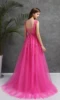 Quente rosa princesa longo vestido de noite colher pescoço apliques frisado tule andar de comprimento sexy a linha vestidos de baile longo festa