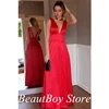 V profundo Neck Prom Vestidos Pary Vestido De Robe De Soirée Longo de Cetim Simples Para As Mulheres Sem Encosto Vestidos de Noite Vestidos De Gala فساتين ال