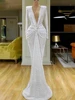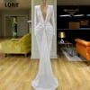 Lorie vestido de noite branco com glitter, estilo sereia, gola em v, manga longa, cristais, personalizado