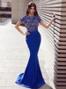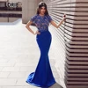 Lorie azul sereia vestidos de noite com manga curta 2022 elegante renda applique contas magro árabe saudita feminino formal vestidos de baile