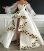 Lorie vestido de noite rendado com flores douradas, manga longa, estilo celebridade, plus size