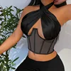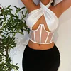 Srub mulheres top curto estampado harajuku, top sem mangas com costas nuas, sexy, bainha assimétrica, moda casual