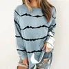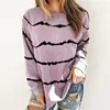 Лка blusa feminina de manga comprida, camiseta de manga longa com estampa listrada e tintura de gravata, cor sólida