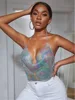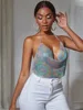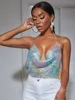 Sruby sexy festa colheita superior cintas de espaguete sem costas halter tank top mulher lantejoulas glitter metálico topo