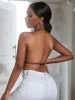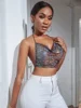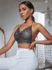Sruby sparkly celebridade lantejoulas strass colheita topo preto meninas sexy mini halter superior festa de regresso a casa sem costas tanque