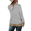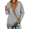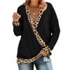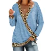 Impressão de leopardo camiseta feminina moda decote em v retalhos solto manga longa tshirts outono casual feminino elegante pulôver design superior