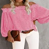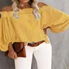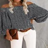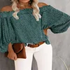 Europeu e americano outono t camisa feminina sexy de uma palavra pescoço sem alças de manga comprida chiffon camisa lanterna manga solta camiseta