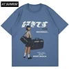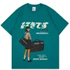 Camisa de algodão de manga curta de manga curta masculina de manga curta de impressão de kanji japonês