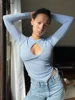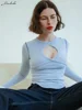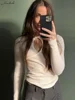 Primavera de macheda 2022 meia alta pescoço magro colheita camiseta com recorte peito sexy estiramento superior rua tendência versátil roupa feminina