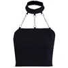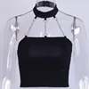 Verão punk halter pescoço corrente tubo de colheita topos sexy preto gótico punk cosplay tanque fino topos oco para fora sólido sem costas topo