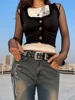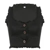 Heyoungirl feminino preto colete colheita topos botão para cima sem mangas hip hop casual moda sólida camis t harajuku punk senhora streetwear