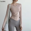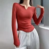 Casual manga longa branco t camisas das mulheres 2022 moda primavera outono magro rosa preto senhoras topos sexy com decote em v macio mulher tshirts