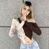 Vintage retalhos colheita topos das mulheres 2022 primavera verão malha manga longa t camisas francês sexy roupas estéticas mulher tshirts