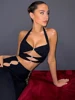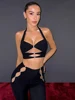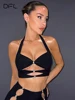 Dfllifes oco para fora tanques e diamantes camis sólido sem encosto cabresto magro colheita topo moda mulher topos sexy clube primavera verão 2022