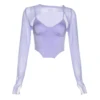 Camiseta feminina e camisola conjunto moda cor sólida manga longa blusa e suspensórios cropped topos