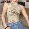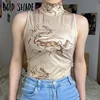 Bold sombra goblincore 90s grunge tanque dragão impressão sem mangas gola alta tank topos indie pastel estética y2k magro roupas 2022