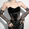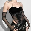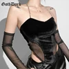 Goth escuro y2k punk veludo feminino sexy busties topos gótico malha retalhos halter camis grunge e girl preto bodycon noite cortada