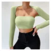 2022 novo 2022 outono de malha tubo topo das mulheres de mangas compridas colete de duas peças camiseta feminina nova sexy topo de colheita de rua moda curto