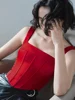 Cetim espartilho colheita superior feminino sem mangas colete assimétrico y2k roupas 2022 sexy superior sem encosto bustier clubwear tubo tanque topos cami