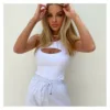 2022 nova oco para fora casual sexy tank top moda fina recortada topo retalhos sólidos mulheres 2022 verão sem mangas básico cortar topo