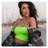 2022 novo 2022 verão feminino nova sexy alta elástica superior, sutiã, ombro aberto, umbigo aberto, manga reta, casual uma linha inferior