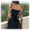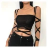 2022 nova malha preta bandagem blusa fada grankey estética roupas cyber y2k gótico colete sexy roupas de rua