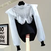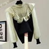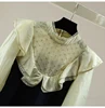 Moda estiramento de malha t camisas para mulheres sexy rendas ponto exterior wear bottoming topos 2022 primavera estilo coreano roupas das senhoras