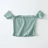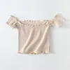 Camiseta feminina, moda verão, moderna, justa, um ombro, cor sólida, sexy, curta