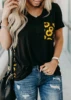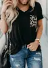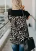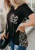 Camiseta com estampa de oncinha, decote em v, bolso, feminina, verão, manga curta, moda de leopardo, traseira, tops, camiseta, verão, nova, solta, 2020