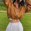 2021 nova locomotiva jaqueta de couro do plutônio feminino jaqueta de couro cor sólida cordão cintura solta zíper jaqueta feminina