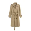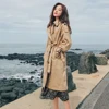 Moda nova feminina trench coat longo double breasted cinto azul caqui senhora roupas outono primavera outerwear oversize qualidade