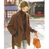 E inverno reversível casaco de caxemira pequeno estilo coreano terno colarinho rendas up solto emagrecimento casaco de lã outono 2021