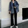 Jaqueta jeans feminina 2021 estilo coreano sólido lapela manga longa casual jaqueta azul outwear outono primavera solto jeans casacos feminino