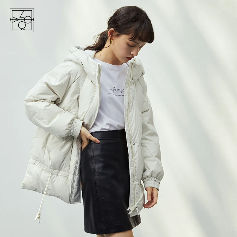Ziqiao feminino três prova de tecido curto inverno branco com capuz para baixo jaqueta mulher engrossar quente reta commuter casual para baixo casacos