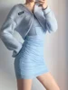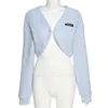 Azul doce menina sensação de emenda casaco primavera magro moda vara etiqueta cardigan sexy rua vento v colarinho umbigo mostrando casaco de malha
