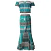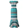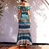 Nova mulher impresso slash neck tornozelo comprimento vestido boêmio primavera arco sem costas ombro alta fenda linha vestido de duas peças terno