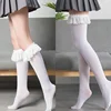 Jk mulher meias rendas bonito preto branco veludo lolita meias longas sexy joelho meias altas kawaii cosplay anime plissado meias de náilon