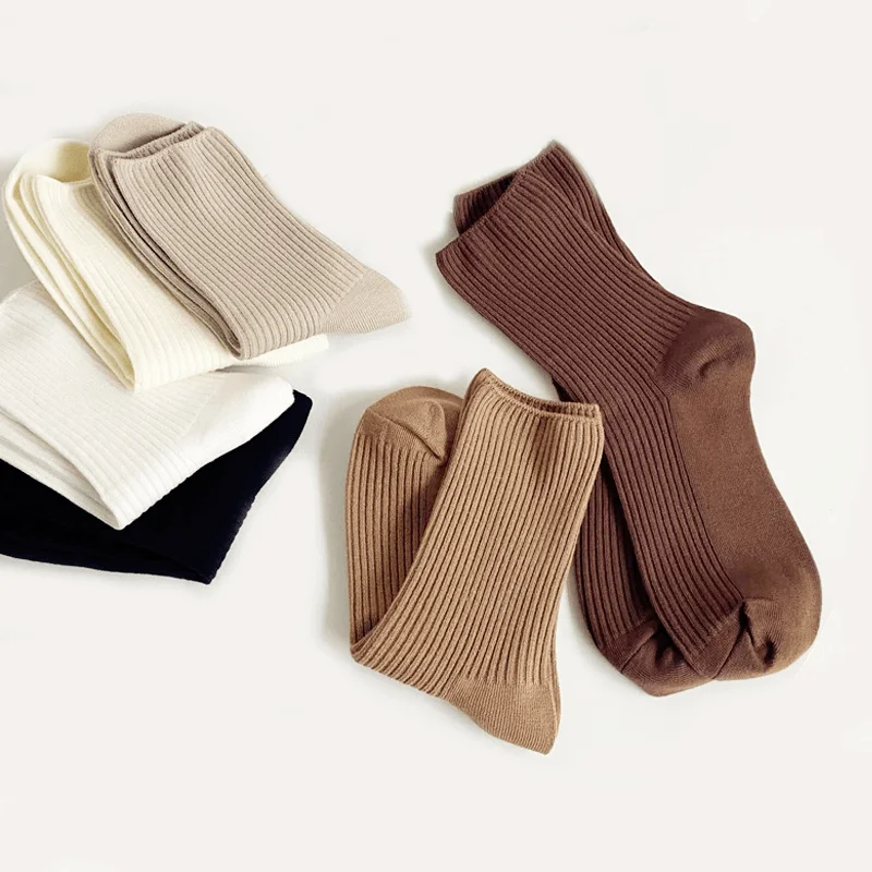 3 pares/lote meias femininas nova moda algodão cor caqui tripulação meias para menina respirável casual coreano feminino meias define algodão